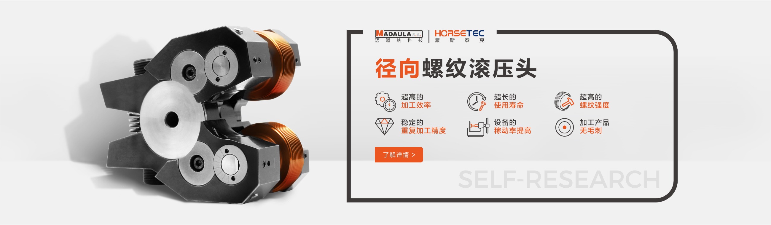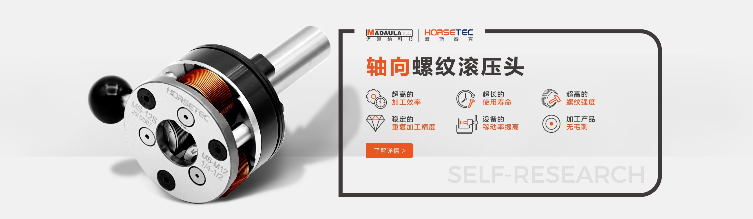 很多做機(jī)械的對螺紋滾壓頭都不陌生,它的功能和優(yōu)勢也是有口皆碑的,所以現(xiàn)在有越來越多的人愿意選擇HORSETEC螺紋滾壓工具來滾壓螺紋,而我們常見到的螺紋滾壓工具是采用鋼材料制作而成的一種滾螺紋加工工具,成功沿襲傳統(tǒng)的螺紋滾壓頭的所有優(yōu)勢,比如高效率、高精度、高強(qiáng)度,除此之外,螺紋滾壓頭可以定制您的專屬logo,不僅有效提升了產(chǎn)品的檔次,給使用者帶來不錯利益。今天要給大家說一說高質(zhì)量的螺紋滾2022-09-13